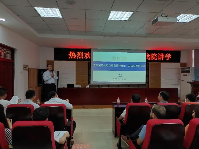 2021年5月12日,东南大学机械工程学院首席教授殷国栋应XK星空汽机学院邀请,在工科一号楼B417多功能报告厅作了题为“汽车智能化电动底盘设计理论、方法与控制研究”的学术报告。报告由汽机学院副院长胡林主持,汽机学院院长杜荣华,XK星空科研部副部长胡宏伟,汽机学院副院长毛聪、何志勇和部分教师及学院部分研究生参加了本次报告会。