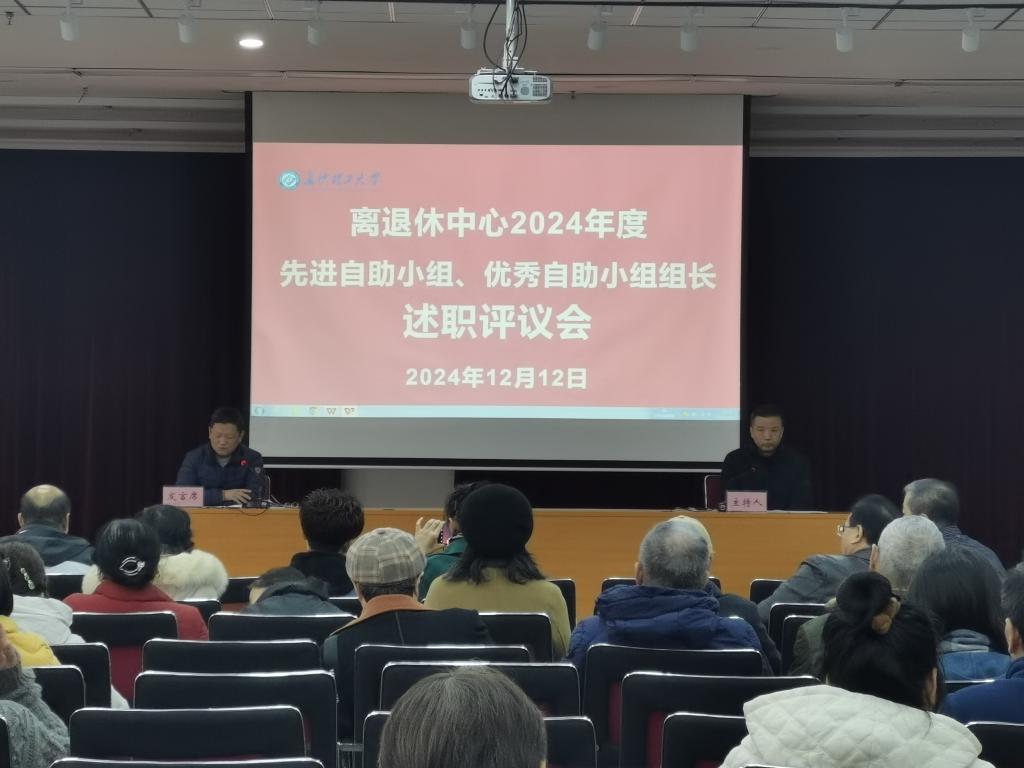 12月12日,离退休中心在金盆岭校区五教 5 楼多功能厅举行了 2024 年度自助服务小组述职评议会,此次会议旨在评选先进自助服务小组以及优秀自助服务小组组长(副组长),39 个自助服务小组的组长与中心全体工作人员参加。会议由中心副主任周宇佳主持。