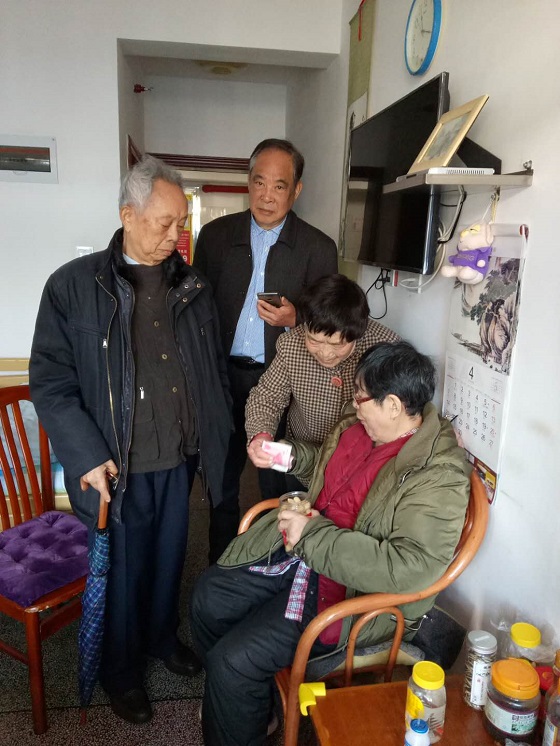 4月16日,支委和部分党员于看望慰问了周应英、宋美君两位生病老党员。
