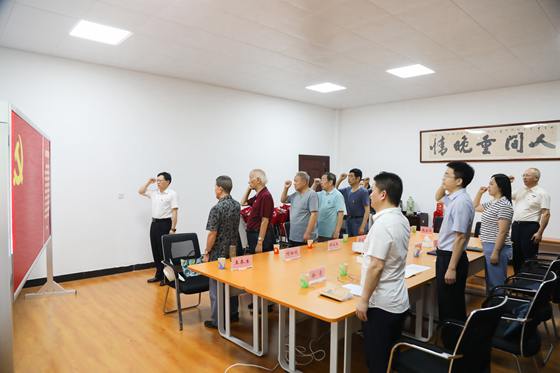 首先,陈曦宣读了荣获纪念章党员名单,刘建民带领全体党员重温入党誓词,随后刘建民、陈曦一一为参加座谈会的8名老党员代表颁发纪念章,将纪念章佩戴在老党员胸前,为老党员送上鲜花。