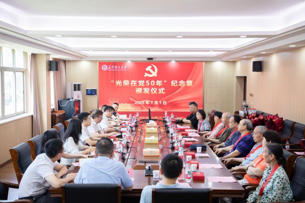 7月1日上午,在中国共产党成立104周年之际,学校在金盆岭校区经管大楼裙楼二楼会议室举行“光荣在党50年”纪念章颁发仪式,校党委书记付宏渊出席并讲话。“光荣在党50年”老党员代表、学校党政办公室、组织部主要负责人、相关学院党委书记、离退休教职工服务中心科以上干部参会。党政办公室主任庄创奇主持颁发仪式。
