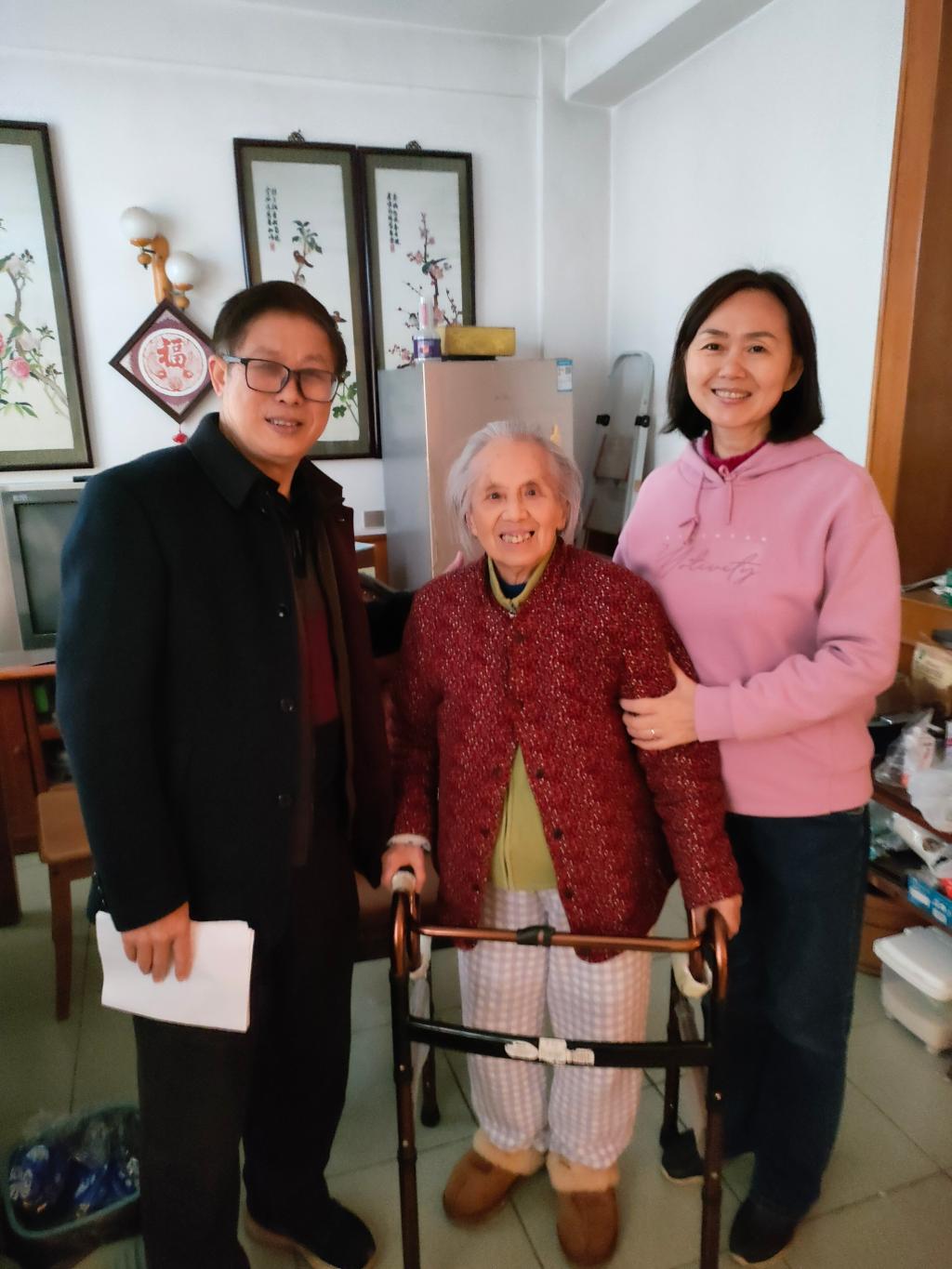 11月16日上午,经管支部书记罗建华、组织委员李春华、自助服务小组八小组组长贾云浦一同上门热情慰问了退休老同志陈世篁老师(85岁、党员)、任霭堂老师(81岁)、肖香莲老师(84岁、党员)。三位老同志见到慰问人员的到来,非常激动。陈世篁老师眼含热泪一再表示感谢学校离退休中心领导、经管党支部以及自助小组对老同志的关怀与关心。三位老师都表示非常感谢党组织和自助小组对他们的关心,感谢学校对离退休职工的关怀与关爱,并衷心祝福学校及离退休事业、工作更好更快地发展。