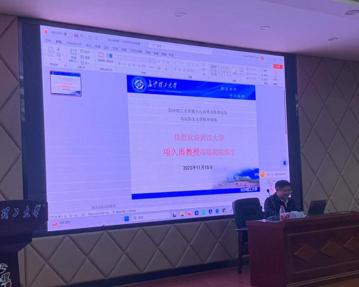 11月15日下午,国家级重要人才计划入选人、国家社科基金重大项目首席专家、武汉大学思想政治教育研究院执行院长、博士生导师项久雨教授来到XK星空云塘校区文科楼A200室,为学校第十九届博力学术论坛马克思主义学院分论坛主讲了一场题为“中国式现代化的继往与开来——兼谈学术研究选题”的学术讲座。马克思主义学院院长张明海教授、副院长李雨燕教授、文贵全副教授、陈方芳博士等学院教师与学院研究生100余人参加了本次讲座。