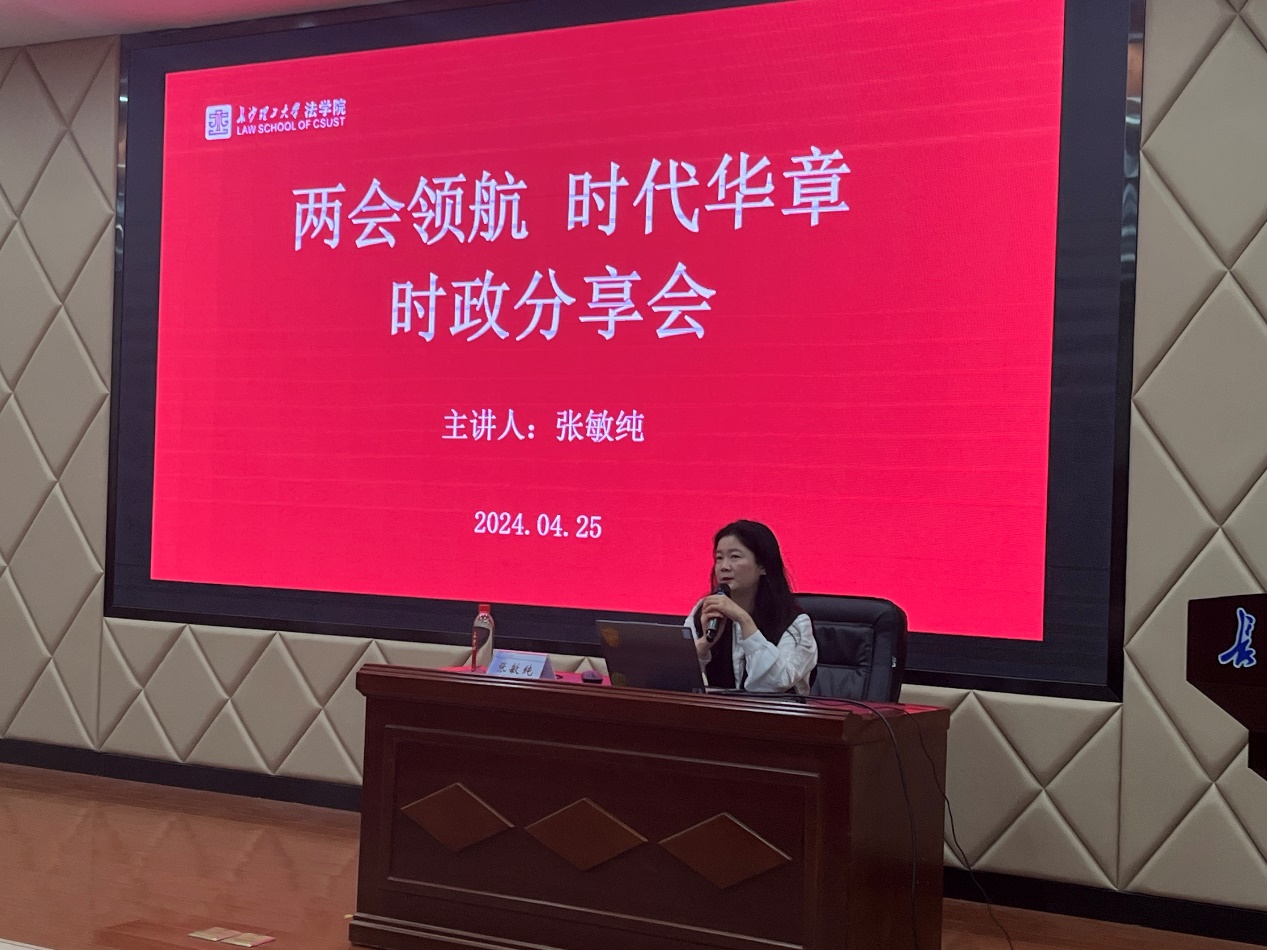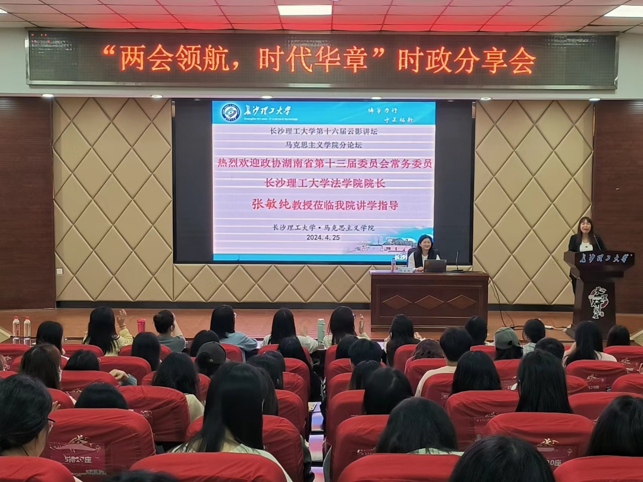 为丰富校园文化生活,拓展研究生学术视野,促进研究生全面发展,4月25日晚19:30,XK星空第十六届研究生云影讲坛之“两会领航,时代华章”时政分享会在云塘校区文科楼A200报告厅如期举行。本次分享会邀请了政协湖南省第十三届委员会常务委员、XK星空法学院院长、湖南省人民检察院特约检察员张敏纯教授。此次活动由副院长郭华教授主持,辅导员曾蓓、全体研究生150多人参加了讲座。