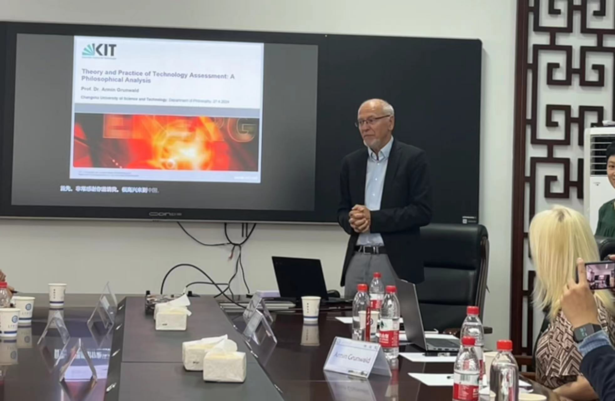 4月27日下午,德国卡尔斯鲁厄理工大学(Karlsruher Institut für Technologie /KIT)Armin Grunwald教授来到马克思主义学院,在XK星空云塘校区文科楼B602会议室作了题为“技术评估理论与实践的哲学分析”的学术讲座。本次讲座由马克思主义学院文贵全副院长主持,余乃忠教授、陈芬教授、蒋显荣教授、廖苗副教授、郭蓉博士等学院部分教师和马克思主义学院2023级哲学、公共管理专业研究生近50人聆听了讲座。此外,广西科技大学黄磊助理教授也参加了本次讲座。