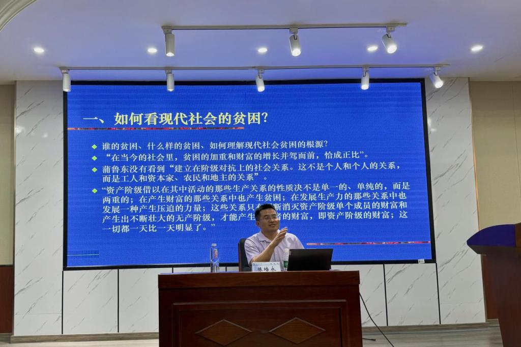 5月12日下午,北京大学马克思主义学院副院长、博士生导师陈培永教授应邀来到马克思主义学院,在XK星空云塘校区文科楼D207报告厅为学院师生带来了主题为“基于经典著作的学术研究方法论——以马克思《哲学的贫困》为例”的学术讲座。本次讲座由我院张明海院长主持,文贵全副院长、教授委员会副主任陈芬教授和艾楚君教授、刘绍云博士等学院教师和研究生近100人共同参加。