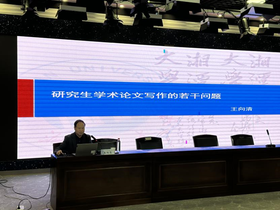2024年10月29日下午14:30,湘潭大学马克思主义学院二级教授王向清应邀莅临我院,在XK星空云塘校区文科楼B300报告厅就 “研究生学术论文写作的若干问题”开展了一场精彩的学术报告。本场报告由马克思主义学院副院长郭华主持,学院教师代表及研一、研二研究生参加。
