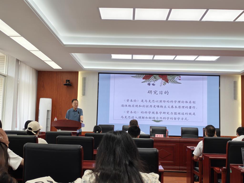 2025年6月25日上午,原教育部高校哲学类专业教指委委员、厦门大学马克思主义学院博士生导师曹志平教授应邀莅临马克思主义学院,在XK星空云塘校区文科类B501会议室为我院师生带来了一场主题为“《资本论》的科学现象学”的精彩学术讲座。本次讲座由学院党委书记陈万球教授主持,文贵全副院长,教授委员会主任余乃忠教授,章雁超博士、郭蓉博士、向谨汝博士等学院部分教师及23级、24级部分研究生参加了讲座。