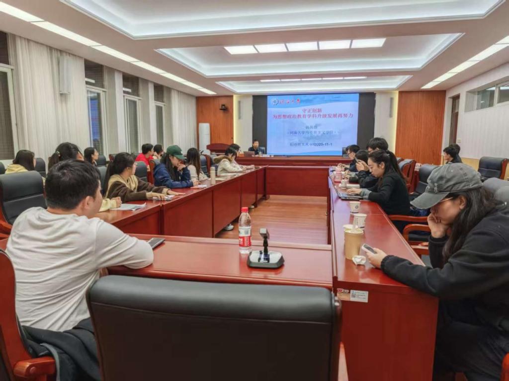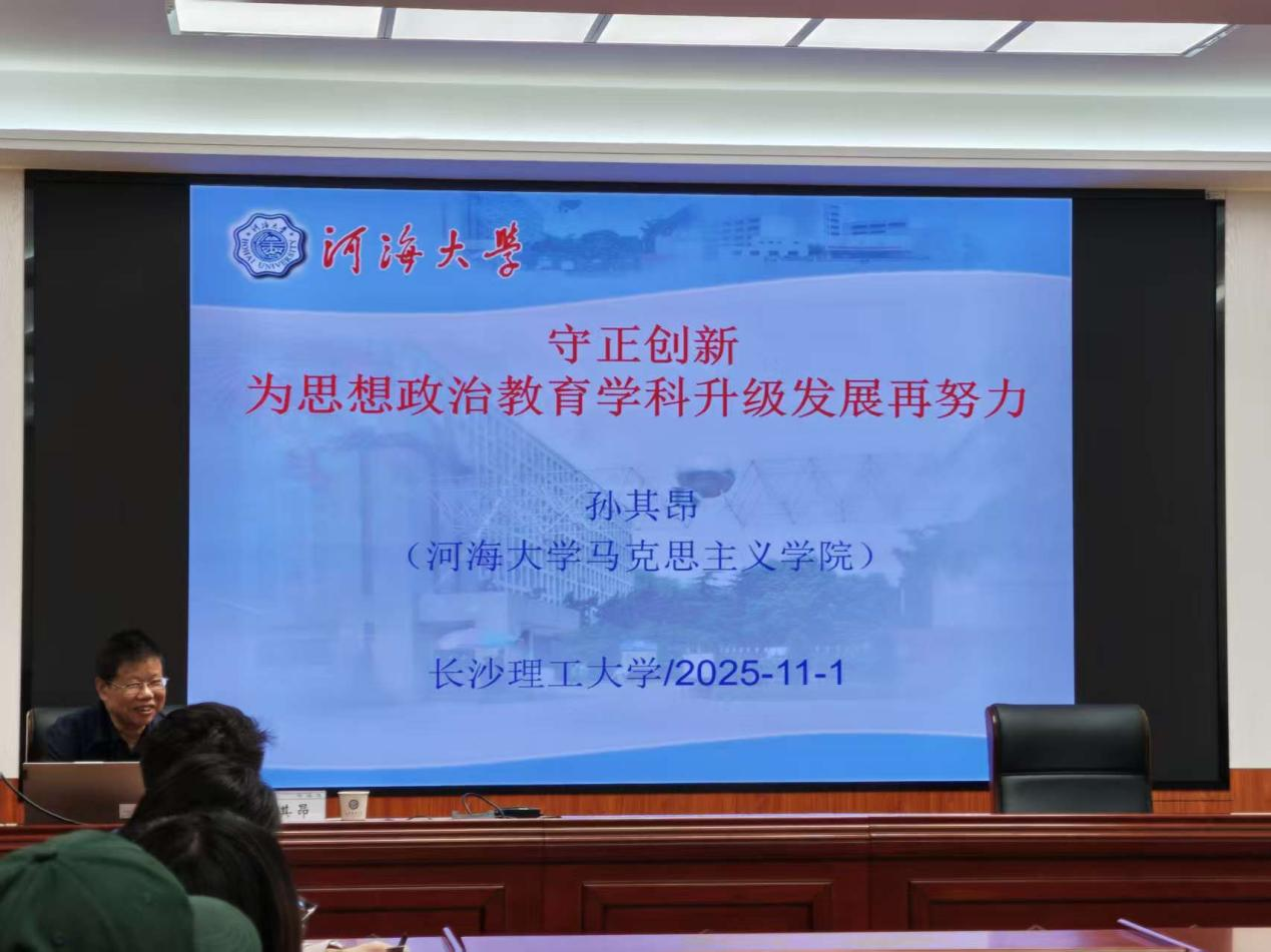 2025 年 11 月 1 日 晚7时,XK星空第二十一届博力学术论坛马克思主义学院分论坛在云塘校区文科楼 B501 会议室顺利举办。论坛主讲嘉宾是河海大学马克思主义学院教授、博士生导师、国务院政府特殊津贴专家孙其昂教授,他以“守正创新,为思想政治教育学科升级发展再努力” 为主题为我院师生带来了一场精彩的学术讲座。本次分论坛由马克思主义学院院长张明海教授主持,学院部分教师及 2024 级、2025 级部分研究生共同参与。
