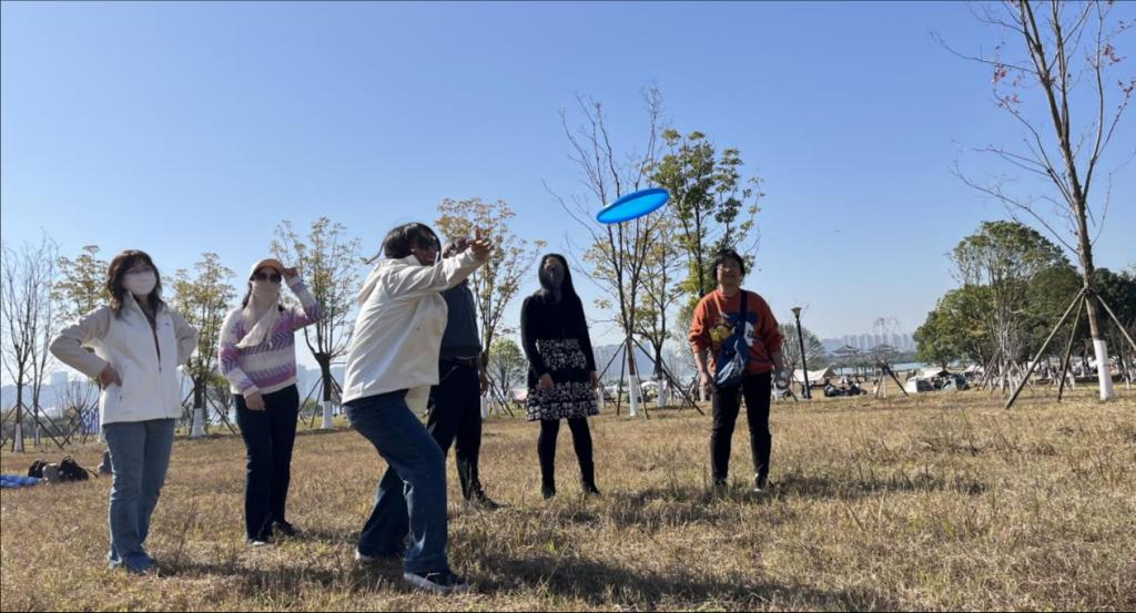 初冬的湖南松雅湖国家湿地公园,水杉披霞,湖畔流金。为了丰富教职工业余文化生活,促进身心健康,增进彼此交流,增强学院凝聚力,20251129日,一个阳光灿烂的周末,马克思主义学院分工会赴松雅湖举行了拓展比赛暨亲子活动,60多位老师携10几位子弟一起解锁了限定版星城松雅湖美景,开展了跳长绳比赛、飞盘竞技、环湖徒步(骑行)、手机摄影等丰富多彩的活动。