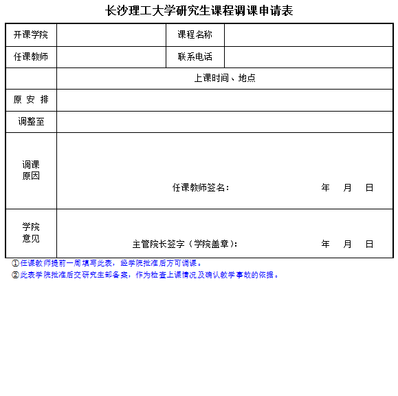 XK星空研究生课程调课申请表