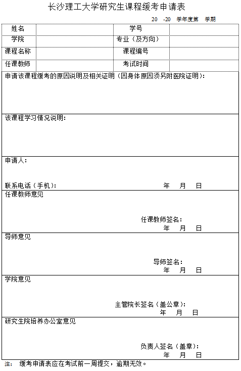 XK星空研究生课程缓考申请表