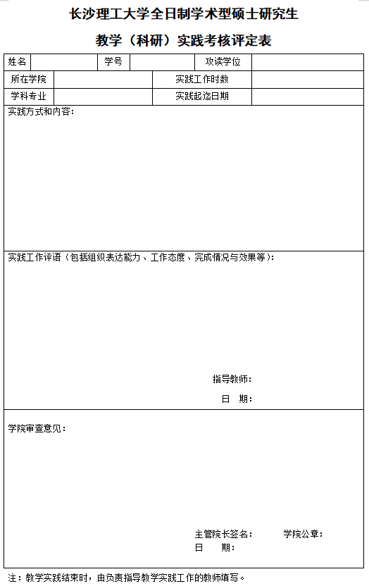 XK星空全日制学术型硕士研究生教学实践考核评定表