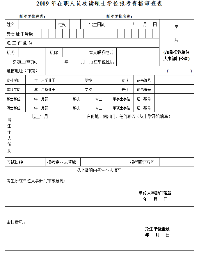 XK星空在职研究生资格审查表(样表)