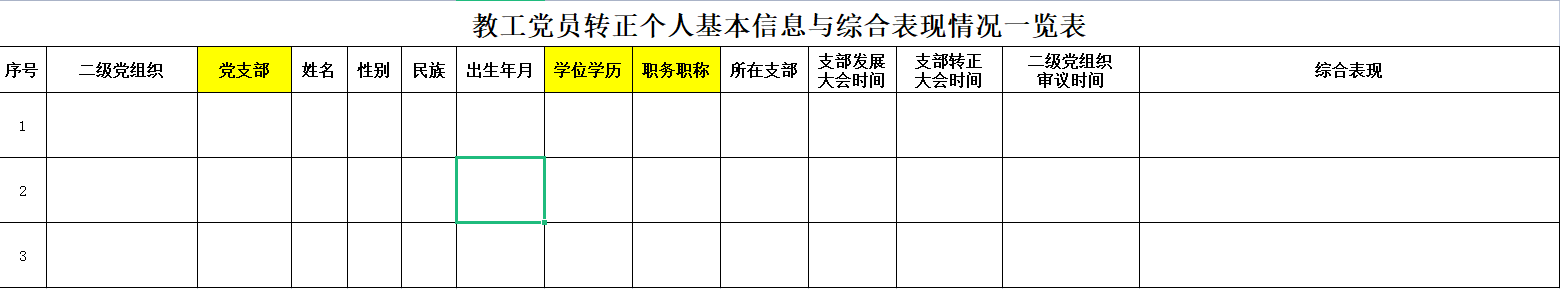 教工党员转正个人基本信息与综合表现情况一览表
