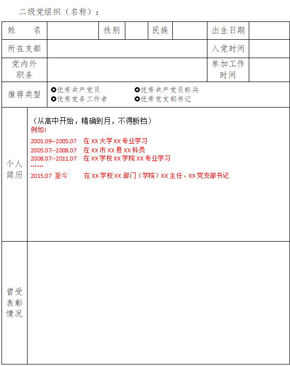 XK星空优秀共产党员、优秀共产党员标兵、 优秀党务工作者、优秀党支部书记推荐审批表