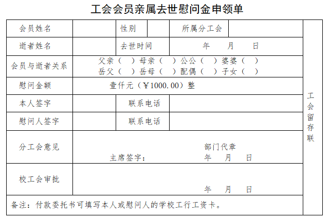 亲属去世慰问金申领单