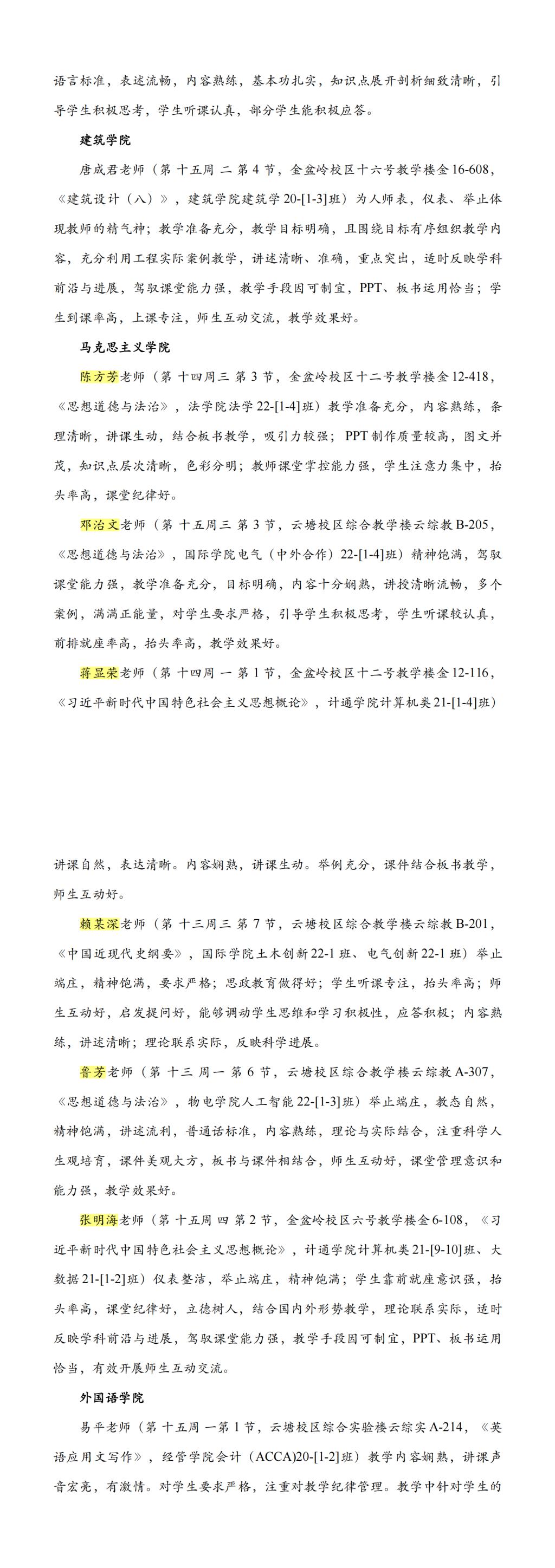 6月30日,XK星空发布《本科教学督导信息》(23年第三期)简报。我院张明海、陈方芳、邓治文、蒋显荣、赖某深、鲁芳等六位教师获推XK星空“课堂教学优秀典型”。