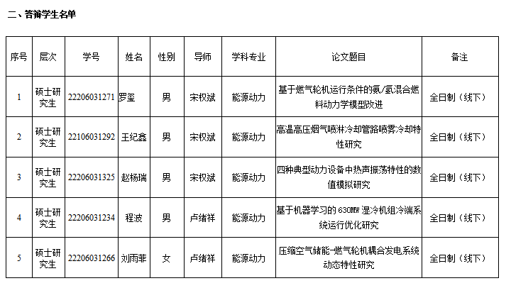 2025年能源与动力工程学院研究生学位论文答辩安排(第十四组)