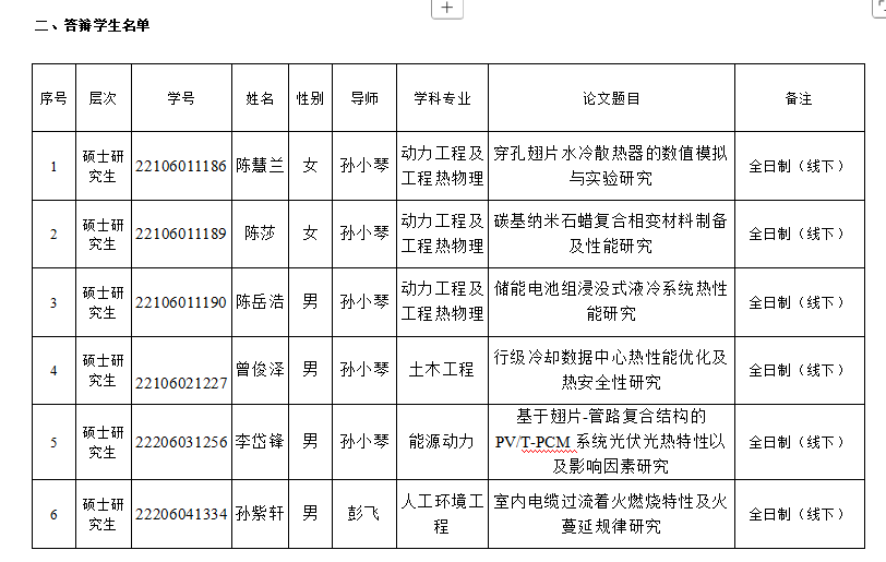 2025年能源与动力工程学院研究生学位论文答辩安排(第二十二组)