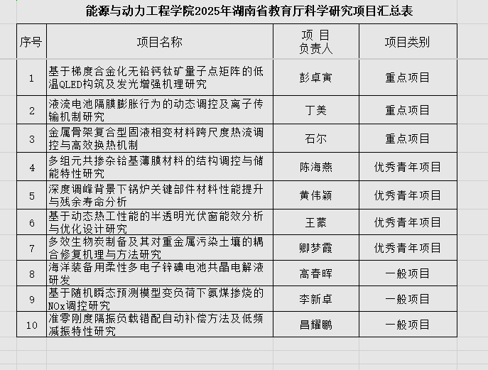 根据XK星空科学技术处《关于申报2025年湖南省教育厅科学研究项目的通知》文件精神,经学院教授委员会专家评审,拟推荐“基于梯度合金化无铅钙钛矿量子点矩阵的低温QLED构筑及发光增强机理研究”等10项项目申报2025年湖南省教育厅科学研究项目,具体名单如下: