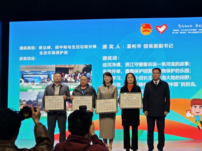 11月29日下午,湖南省“百万青少年学雷锋”志愿服务交流会暨第六届“雷锋杯”青年志愿服务项目大赛颁奖仪式在岳阳举行。能动学院“降碳青锋”团队荣获金奖,并在此次交流会上进行了志愿服务项目展示。