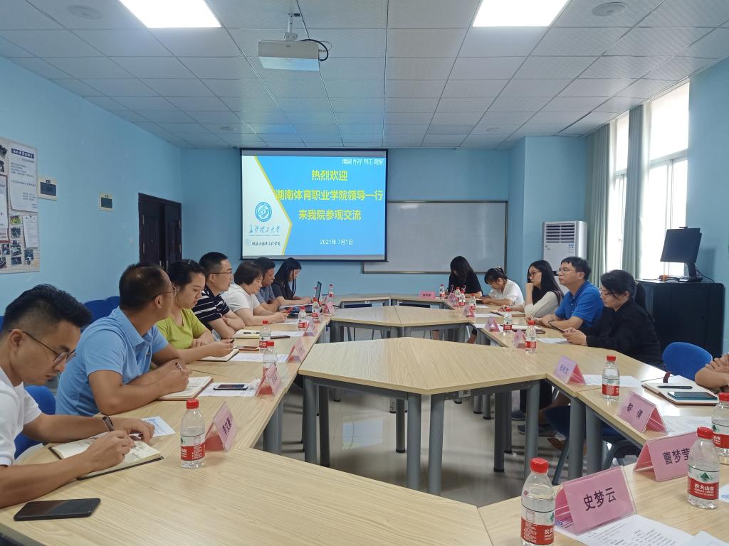7月1日下午,湖南体育职业学院体育系党总支书记柳军、学生工作处副处长颜玉平一行10余人来能源与动力工程学院学习交流成长辅导室建设经验。学校心理健康教育中心龚勋主任、能动学院党委副书记兼副院长张晓烽、全体辅导员参加交流会。