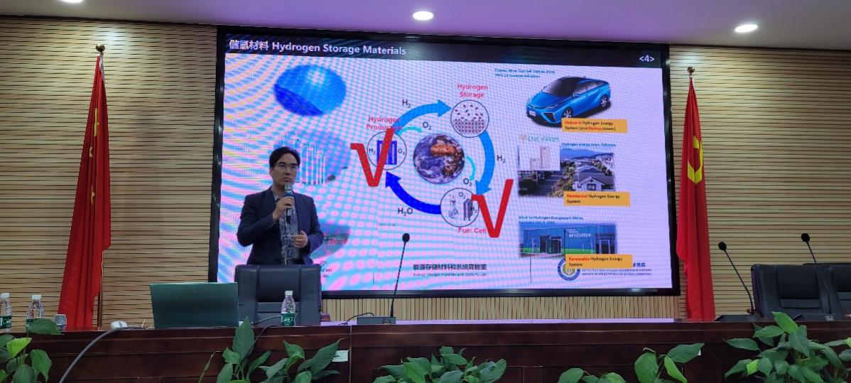 澳门大学邵怀宇副教授做了题为“Hydrogen Energy Storage or LIBs? A research story from mobile to stationary applications(氢能储存还是锂离子电池?从移动应用到固定应用的研究故事)”的精彩报告。在报告中,邵怀宇副教授介绍了氢能存储和锂离子电池的基本工作原理及这两种技术在移动装置和固定设备中的应用和适用性。在总结国内外研究进展基础上,介绍了团队在氢能储存和锂离子电池领域的最新研究成果和研究探索,系统对比了这两种技术在移动应用(如电动车辆)和固定能源系统(如电网储能)两个关键领域中的优缺点,并对未来能源储存技术走向进行了思考和总结。