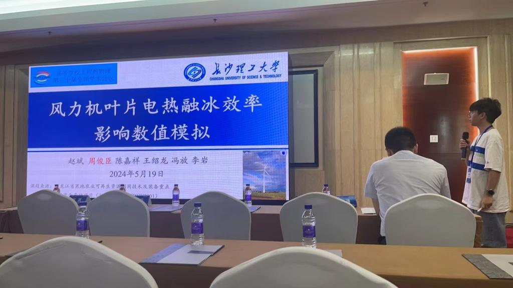 我院石尔老师在分会场作了题为《工程热力学一流本科课程教学改革创新与实践》的教学专题邀请报告,分享《工程热力学》一流本科课程建设经验和心得。成珊老师在分会场作了题为《污泥脱水调理剂热解过程中原位固定邮寄硫氮研究》的学术报告,介绍了污泥调质对恶臭气体的原位控制机制,为解决污泥调理-干化-热解技术中含硫、氮臭气协同控制的瓶颈问题提供理论依据与技术指导。陈嘉祥老师在分会场作了题为《基于工质压缩液化的物理储能基础问题研究》的学术报告,介绍了在以液态空气储能为代表的工质压缩液化物理储能技术领域的相关基础与应用研究工作。研究生周俊臣作了题为《风力机叶片电热融冰效率数值模拟》的学术报告,通过Fluent探究不同加热片面积占比,叶片覆冰区域表面加热片的布置方式以及相关参数对风力机表面电热融冰的效率影响。研究生张洲洋作了题为《超临界二氧化碳布雷顿循环中PCHE型预冷器不同流道耦合的流动换热数值分析》的学术报告,通过考虑冷热流体间的物性差异与对应流道结构的耦合作用,以提高印刷电路板式换热器性能。会议期间,我院师生还与参会同行交流了近些年开展的科学研究、技术开发和人才培养情况,获得了有关专家学者的建议和启示。(文/曾栋坪 图/李新卓、成珊 一审/曾栋坪 二审/张健 三审/贾传坤)