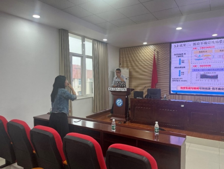 王江江教授发表了题为“多能互补分布式能源系统的不确定性规划方法与运行调控”的报告。他首先指出分布式能源与集中式能源融合是构筑未来清洁低碳、安全高效能源体系的发展方向,分析了其优劣势,并提出了协同规划与运行的技术路线。王教授从研究背景、热力学基础、随机与鲁棒规划等方面深入介绍了多能互补分布式能源系统的应用及实例,并分享了其团队在多能互补系统的热力学基础、源荷不确定性场景刻画与预测方法、分布式能源系统随机/鲁棒规划、平抑源荷波动的主动调控策略、多主体多用户的协同规划与运行及多能互补综合能源系统规划平台等关键技术与成果。这些内容为在场的师生提供了宝贵的学术经验和启示。报告结束后,我院师生积极与王教授进行了深入的交流和讨论,现场气氛热烈,学术氛围浓厚。