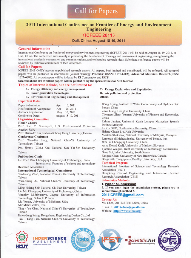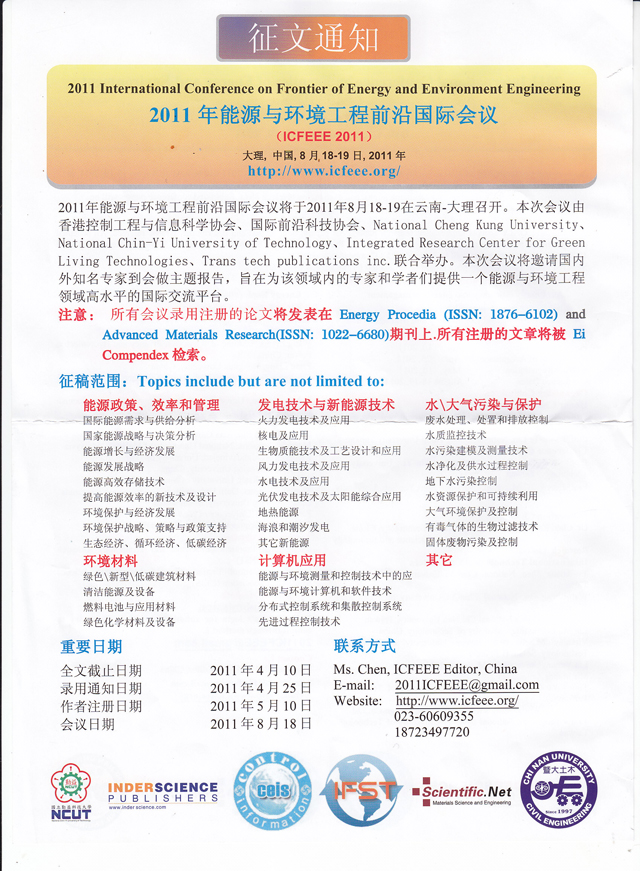 2011年能源与环境工程前沿国际会议征文通知
