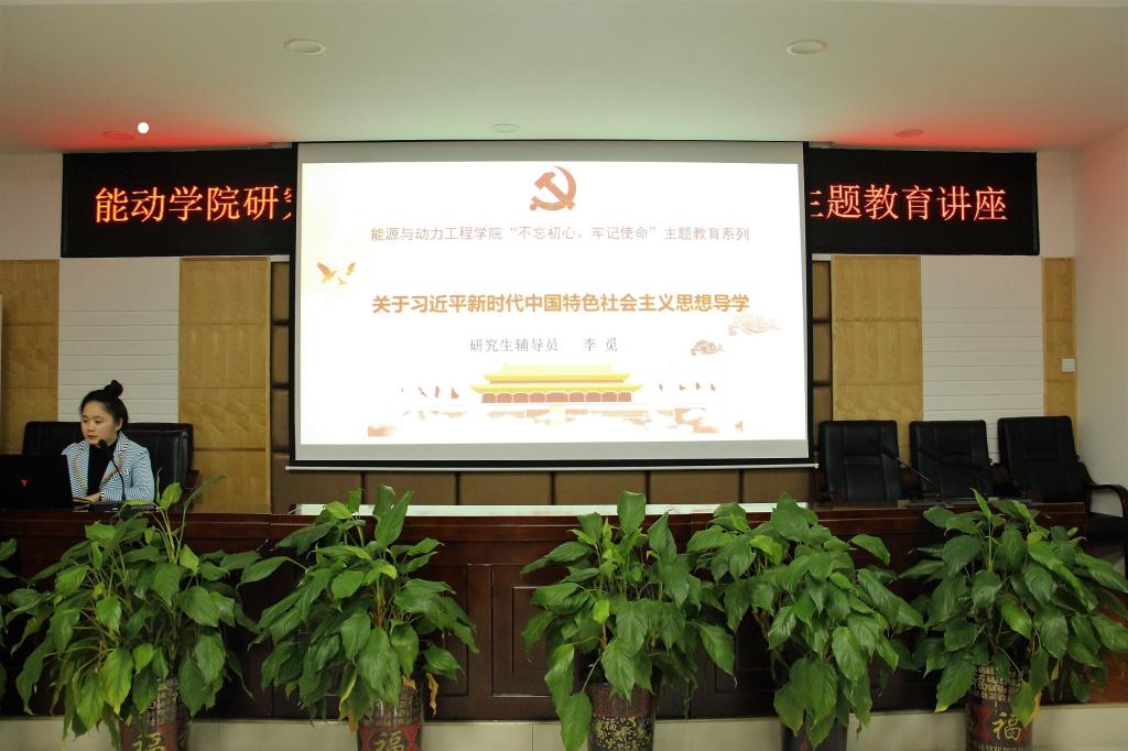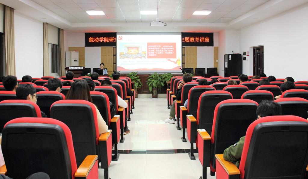 10月29日晚,能源与动力工程学院研究生“不忘初心、牢记使命”主题教育讲座及导学习近平新时代中国特色社会主义思想在新能源二栋502会议室顺利举行。研究生辅导员李觅主讲,云塘校区全体研究生参加学习。