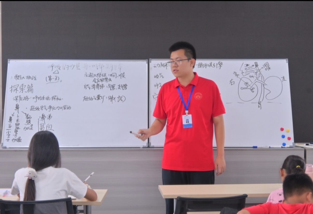 “来,同学们,试试捏住鼻子,再把嘴巴闭紧。”团队成员谭俊朋话音刚落,学生田钫杰就尝试起来。没一会儿,他的小脸憋得通红,赶紧松开手大口喘气。“原来不呼吸这么难受!”他惊讶地说。紧接着,一张图出现在大家眼前:上面写着“缺氧4分钟脑损伤,10分钟可能致命”,教室里顿时一片倒抽冷气。原来,这最平常的呼吸,竟如此珍贵!