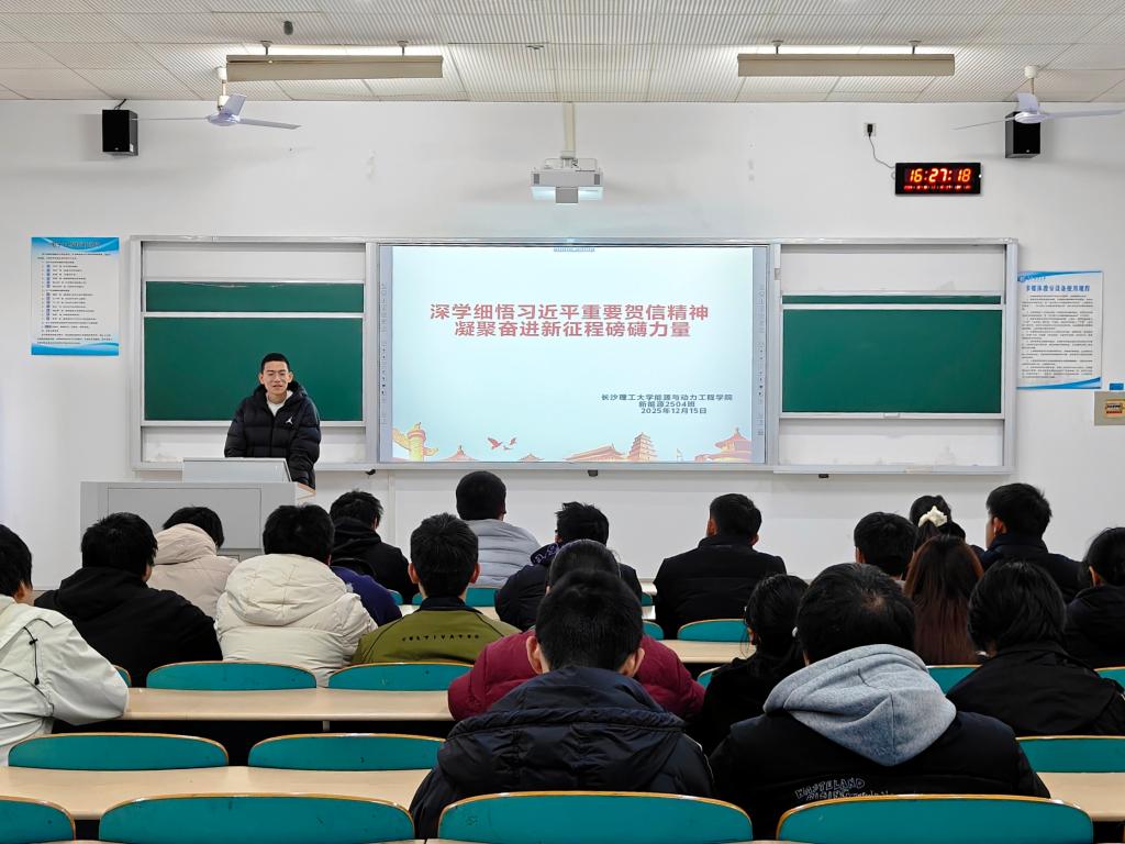 各团支部以主题班会为主要形式,通过原文领学、背景介绍、要点解读、视频观看、心得分享等,对习近平总书记重要贺信精神的时代背景、深刻内涵、核心要义以及殷切期望进行了系统学习和讨论,切实感受习近平总书记贺信字里行间蕴含的深邃思想、战略眼光和真挚关怀。其中,易晶莹同学结合自身的学习生活与未来规划,畅谈对“坚定理想信念、勇担历史使命”的理解,表示将牢记习近平总书记的殷切嘱托,在实际行动中把个人成长融入强国建设、民族复兴的伟大征程中。
