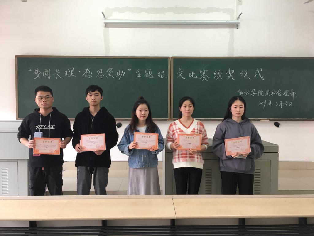 3月19日下午,能动学院“圆梦长理·感恩资助”主题征文比赛的颁奖仪式在云塘和金盆岭两个校区成功举行,至此,第一届资助类征文比赛的圆满结束。