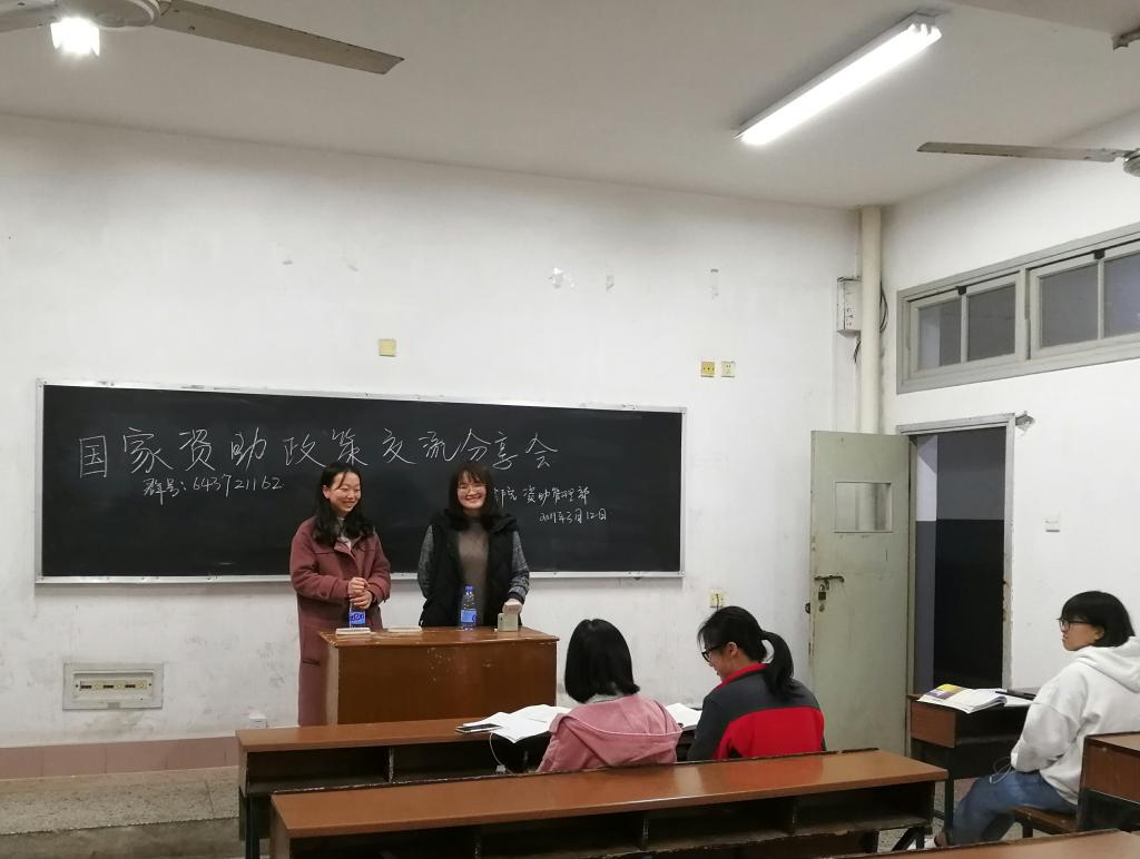 本次交流活动是学院国奖及助学金获得的高年级同学进入新生晚自习班级进行面对面宣传。在简单表明来意之后,资助宣传大使们就国家奖助学金、助学贷款,困难补助和勤工助学四大资助政策与同学们展开交流,并结合自己在资助方面的经历向同学们分享学生资助政策带来的帮助。在分享完资助政策之后,作为学长学姐,资助宣传大使们也向大一的同学们分享了一些关于学习和生活的经验,并就同学们提出的疑问耐心回答。