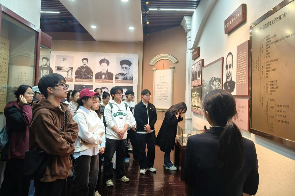 此次活动正值烈士纪念日,在纪念馆讲解员的带领下,同学们缓缓步入序厅,映入眼帘的浮雕瞬间将同学们待会那段热血沸腾的往昔岁月。步入“求学立志”展厅,毛泽东成绩单等文物静静地陈列于此,无声诉说着伟人曾经的苦学之路与新民学会的峥嵘历程,同学们仿佛能看到青年毛泽东在教室中专注求知的模样,耳畔似乎回荡着他在庭院里与志同道合之友热烈讨论国家大事的激昂话语,那专注的眼神、澎湃的热情,深深触动着每一位同学的心灵。