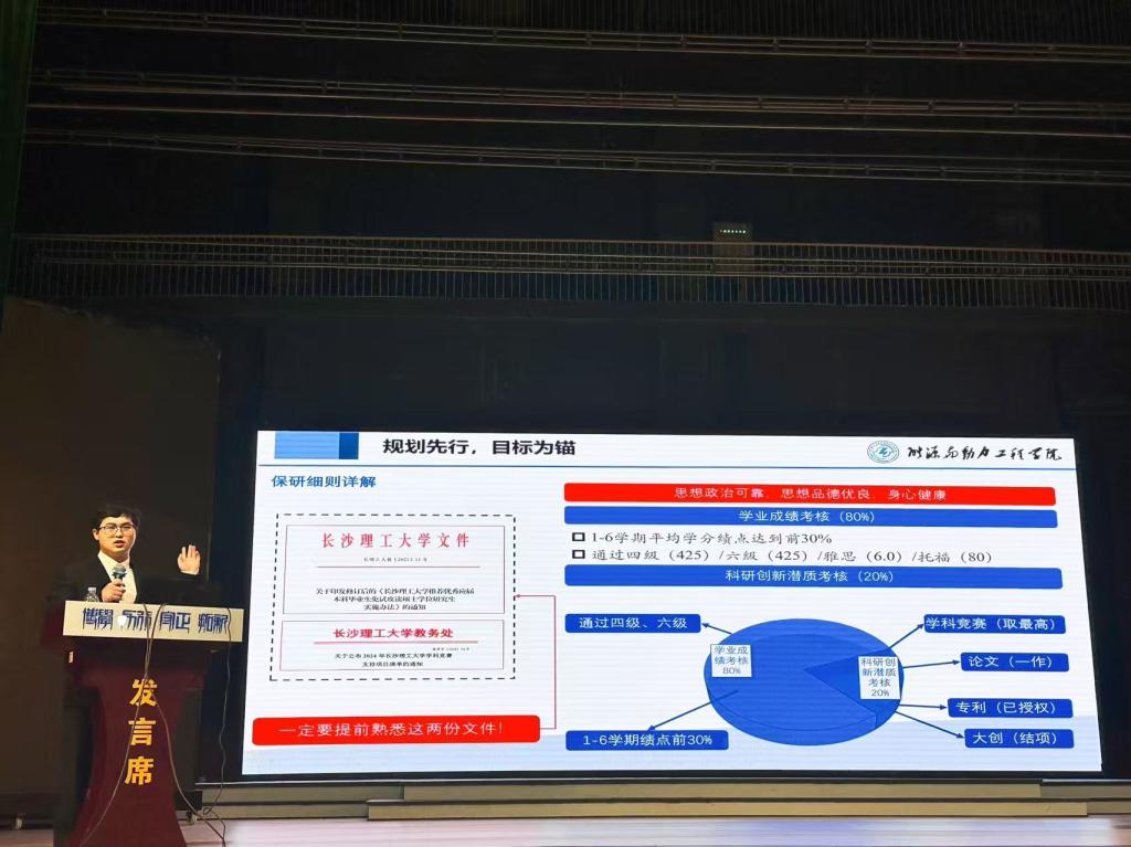 谢喆围绕学业规划与学风建设、校园生活与安全管理、日常管理等方面,作出详细学情分析与重要事项提醒。他指出,当前年级普遍存在学业压力大、规划目标不清晰、实践行动滞后等问题,告诫同学们要进一步做好时间管理,摸索科学方法,做好心理调节,保证正常睡眠,享受健康生活。