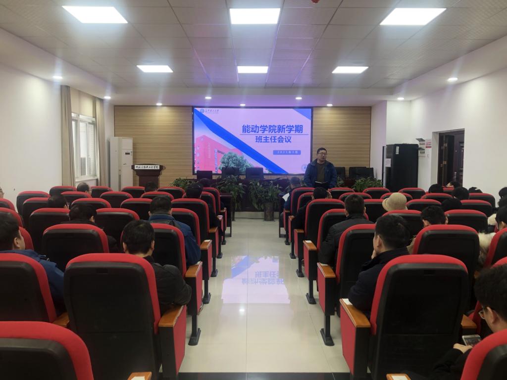 为更好地开展新学期各项工作,建强学院全员育人队伍,能动学院于3月9日下午在新能源2号大楼多媒体报告厅组织新学期第一次班主任会议,学院副院长鄢晓忠、全院本科生班主任参加本次会议,会议由学院党委副书记、副院长靳攀科主持。
