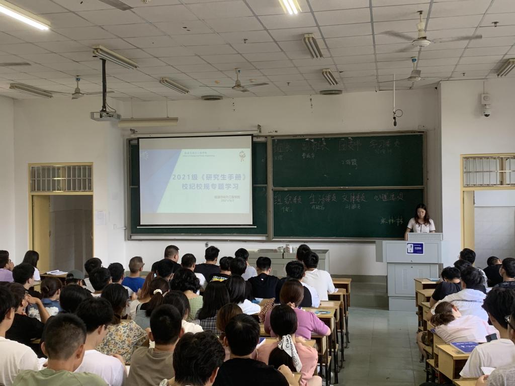 9月7日下午2:30,能源与动力工程学院2021级研究生新生班会暨学生手册专题学习在金盆岭一教A406召开。班会由学工办辅导员周文倩主持,研究生辅导员李觅老师,20级研究生文科、刘豪以及2021级全体研究生参加会议。