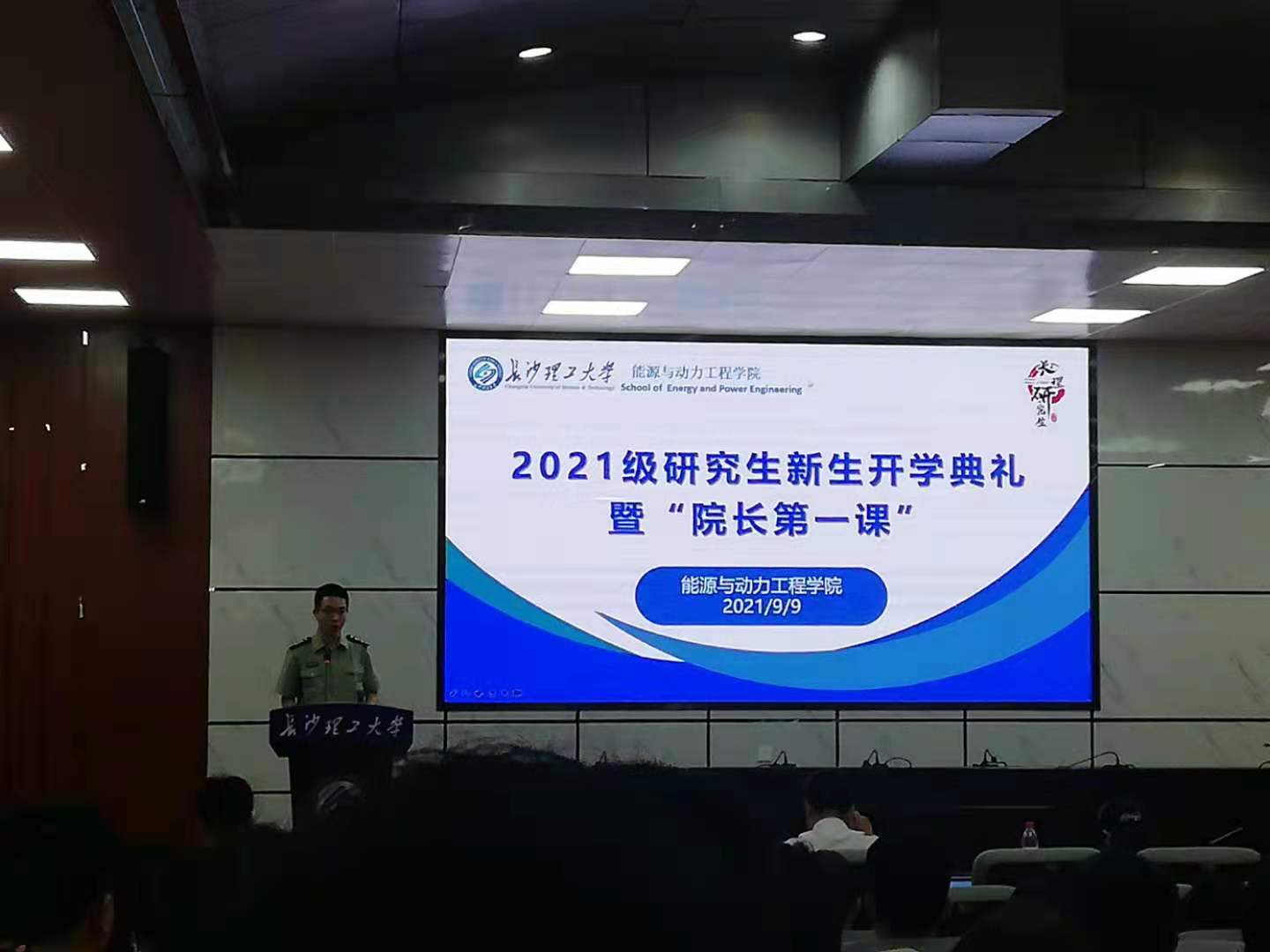 9月9日上午8:30,能动学院2021级研究生开学典礼暨“院长第一课”在金盆岭校区四教报告厅成功举行。本次开学典礼由能动学院党委副书记兼副院长张晓烽主持,党委书记成华、院长陈荐、副院长李传常、研究生新生导师出席典礼,2020级研究生代表文科及2021级研究生全体同学参与。