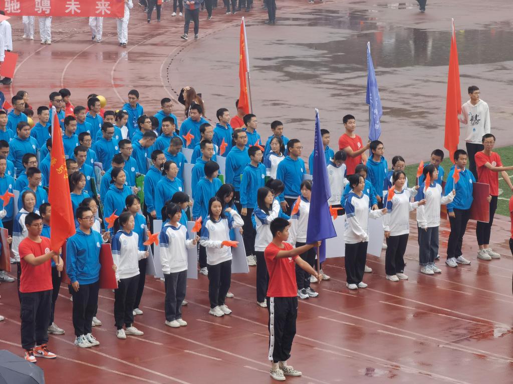细雨无法浇灭我们的热情,倘若层云遮蔽了太阳,我们便是操场上最耀眼的光。没有一位运动员退缩,没有一名工作人员懈怠,迎难而上,不惧不畏。跌倒了,爬起来继续,踉跄了,调整后继续前行。这所展现的正是不服输,不怕苦的运动精神。