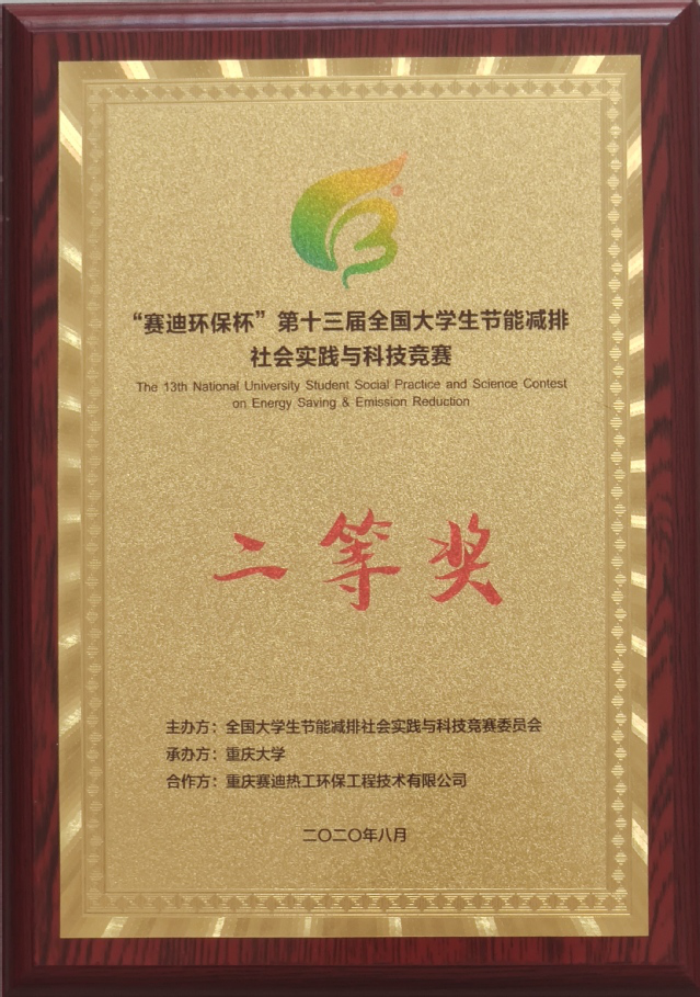 “全国大学生节能减排社会实践与科技竞赛”是由教育部高等教育司主办国家级赛事,自2008年以来已成功举办十三届,该竞赛已经成为全国高校影响力最大的大学生学科竞赛之一。2020年“赛迪环保杯”第十三届全国大学生节能减排社会实践与科技竞赛由重庆大学承办全国427所高校参加,共收到作品4138件,经过竞赛委员会组织专家网络评审和会议评审,其中219件作品晋级全国总决赛,672件作品获得三等奖,进入决赛作品数量仅为提交作品数量的5%。