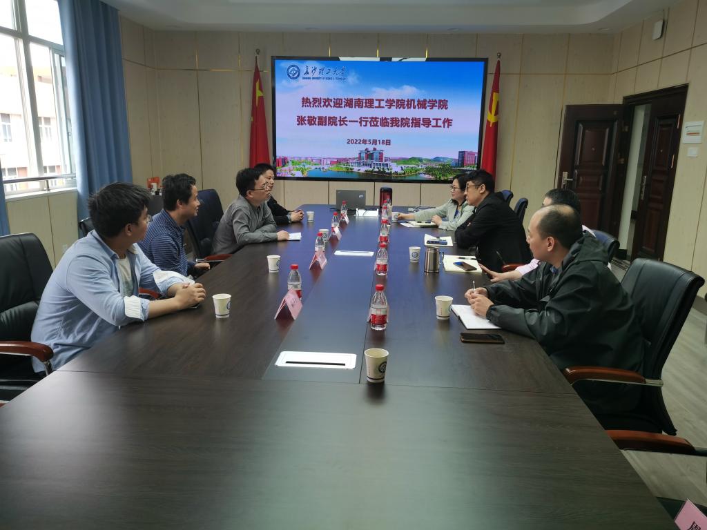 2022年5月18日上午,湖南理工学院机械工程学院张敬副院长李实副教授、魏累教研室主任、陈伊宇博士一行来我院调研交流,能动学院副院长何建军、田红,以及赵斌教授、彭卓寅副教授、唐明珠副教授等教师参加。