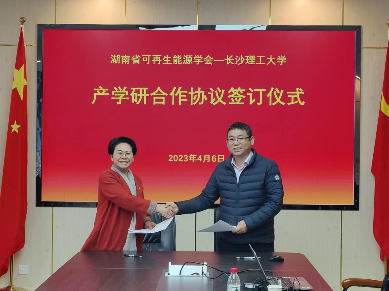 陈荐院长对湖南省可再生能源学会陈丽华执行会长一行表示热烈欢迎,详细介绍了我院学科专业平台、师资队伍、人才培养、科研方向等情况;陈丽华会长介绍了湖南省可再生能源学会成立于2018年,以及近几年在联系政产学研金和推动可再生能源产业发展方面所取得成绩;双方就合作事宜进行了商谈,表示将加强紧密合作,共同致力于“双碳”目标,并签订了产学研合作协议,会后陈丽华执行会长一行还参观了我院专业实验室。(文/图 樊门 审/何建军)