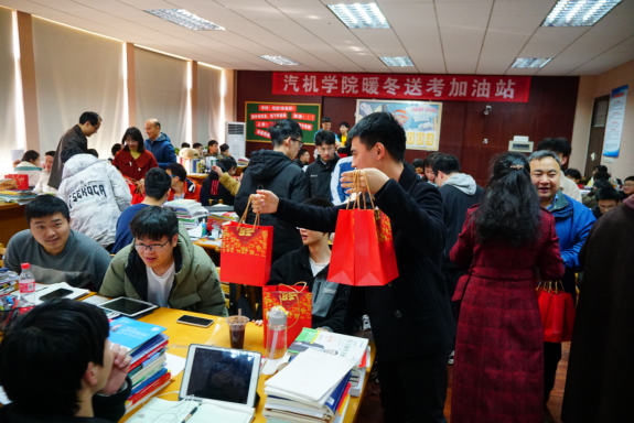 12月21日,XK星空汽机学院院办党支部的老师们在学院考研自习室和行五宿舍为全院280余名考研学生赠送“考研加油包”。学院党委书记施一满、院长杜荣华出席,部分院领导及全体院办党支部党员参加。