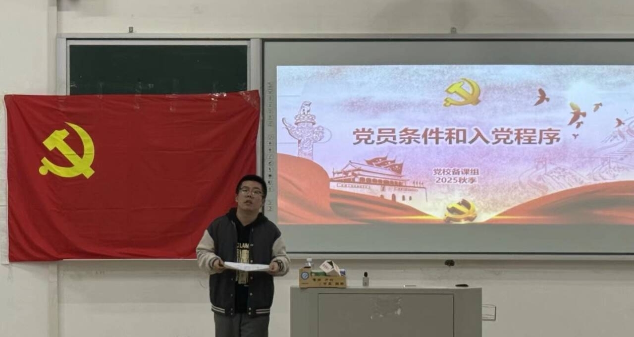 课上,陈鑫宇围绕“党员条件与入党程序”这一主线,系统、全面地讲解了五个方面的内容:申请入党的基本条件、党员应当具备的基本标准、党员义务的具体内容、党员权利的正当行使以及入党程序的各个环节。他结合党章和相关制度规定,通过理论阐释与实例说明相结合的方式,帮助同学们深入理解从申请入党到成为一名正式党员的全过程。陈老师还结合自身经历,强调了党员应具备的坚定信念、服务意识和责任担当,鼓励同学们不仅在组织上入党,更要在思想上和行动上入党。