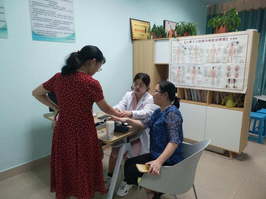 在义诊活动中,江医生认真细致地为学院老师们测量血压、中医把脉、耐心讲解中医保健穴位和食疗等方面的健康知识,并对我单位部分患有颈椎病、肩周炎、关节炎等慢性疾病的同事进行中医检查和相应的理疗。老师们反映,义诊后病症得到有效缓解,诊疗效果良好。
