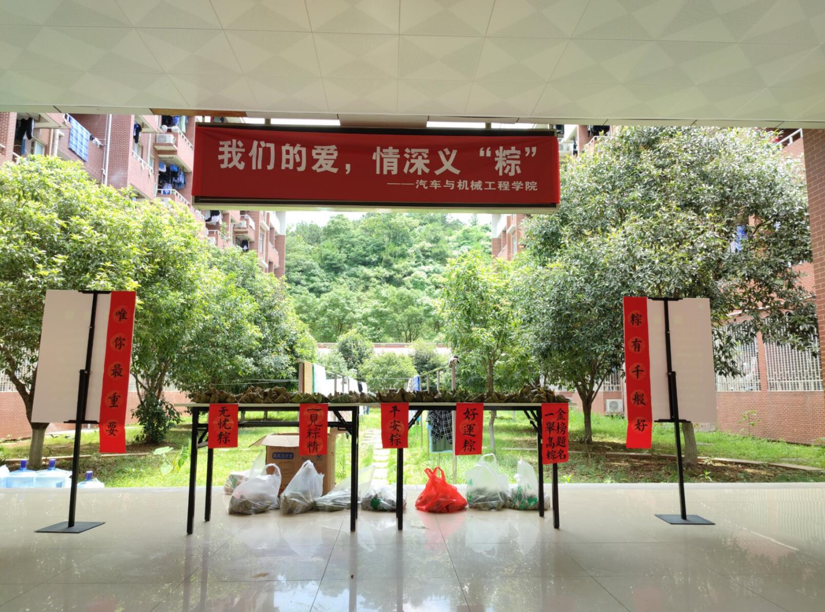 6月14日一早,全体学工办老师就为这份礼物奔波忙碌。摆桌子、挂横幅、搬粽子、写祝福。大肉粽、枣泥粽等各类口味的粽子被赋予了不同的寓意,有金榜题名一举高粽,无忧无虑快乐粽,一见粽情甜蜜粽,健康喜乐平安粽,万事如意好运粽。一颗小小的粽子,传递的是舌尖的美味,传承的是汽机的真情。