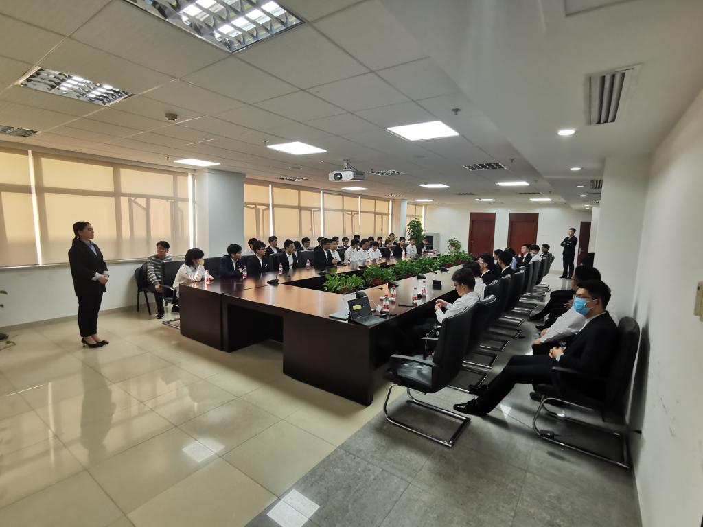 参观结束之后,联培班的同学们参加了中联重科人力资源部开展的“智汇中联,共创未来”交流会议。会上,中联重科混凝土泵送机械分公司人力资源部副经理邓蓉为联培班同学简要介绍2022年中联重科产业园区规划,以后的工作环境,工作岗位等相关内容,表达了对联培班所给予的希望。随后,中联重科人力资源部人事专员杨茜玉进行了分享,表示自己入职中联半年多以来的工作经历中收获很大,并为在场